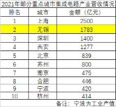 不知不觉中,无锡倾注所有打造的集成电路产业规模跻身全市第二,妥妥的支柱产业。放全国来讲,产业规模仅次于上海,高于北京等一众高手。