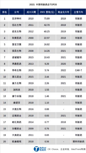 在2021年中国创新药企TOP20的榜单中,信达生物位列第二,基石药业位列第十,康瑞杰宁位列第十三。