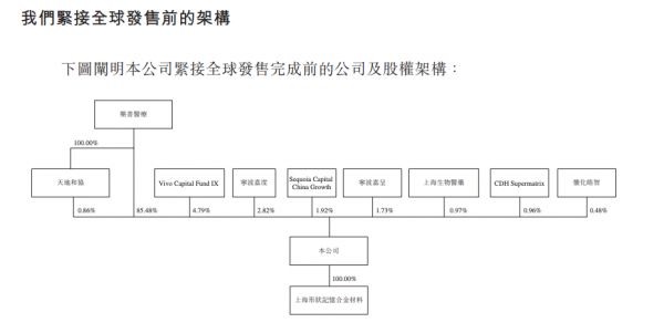 IPO前,乐普医疗连同其全资附属公司天地和协合共持持股86.34%,维梧资本持股4.79%,宁波嘉度持股2.82%,红杉资本持股1.92%,上海持股0.97%,鼎晖资本持股0.96%,怀化皓智持股0.48%。