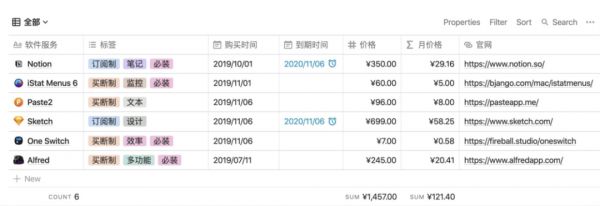 Notion、Airtable 甚至是 Numbers、日历这类工具也能成为我们管理订阅服务的好帮手,比如我们此前发布的 这篇文章 就介绍了如何用 Notion 强大的自定义能力制作一个订阅服务数据库。这些工具和服务不仅能帮我们厘清 App Store 中的订阅项目,对于 App Store 以外提醒渠道和能力更弱的第三方订阅项目,能够起到更加显著的提示和管理效果。