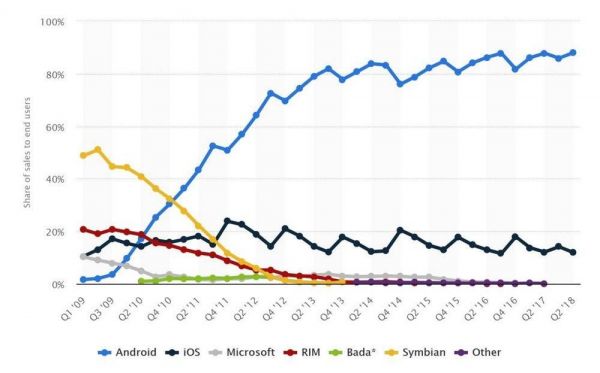 尽管 WP 系统曾是微软移动操作平台押注的未来,但 WP 的市场份额一直没有过太多起色,盖茨的原话说得很对:这是一个赢家通吃的市场。