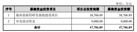 2022年11月1日,泓博医药在创业板正式敲钟上市。根据其公布的招股书显示,此次泓博医药IPO拟募集资金4.77亿元,其中3.87亿元用于临床前新药研发基地建设项目,剩余9000万元则将用于补充流动资金。