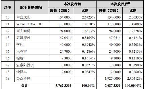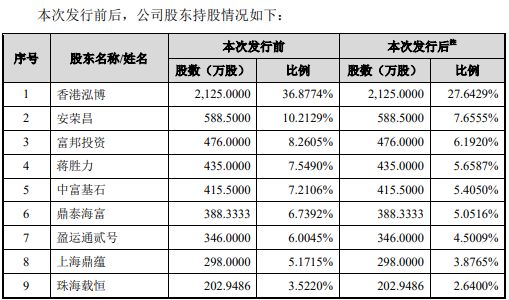 那么上市后,泓博医药的股东股权比例变化又是怎样的呢?可以参考下方招股书中的次发行前后公司股东持股情况: