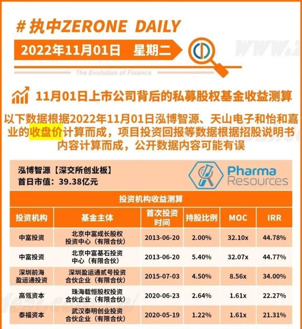 从这之中我们会发现,更早入局的两笔中富投资,最早首次投资时间都是2013年6月20日,因此,无论是回报倍数还是IRR都显著高于其他投资机构。紧随其后投入泓博医药的深圳前海盈运通投资,仅仅是晚了2年首次投资,但预测的MOC是断崖式下跌。