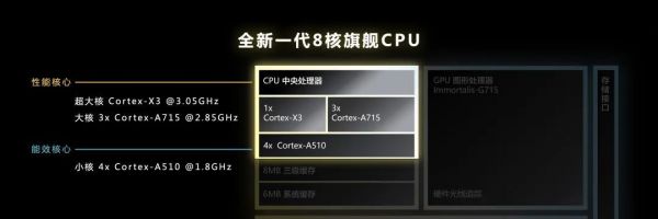 天玑 9200 首发台积电第二代 4nm 工艺,集成了 170 亿晶体管。CPU 架构是熟悉的“1+3+4”三丛集,超大核用上最新的 Cortex-X3,主频 3.05GHz。缓存配置为 8MB 三缓、6MB 系统级缓存,与天玑 9000 一致。