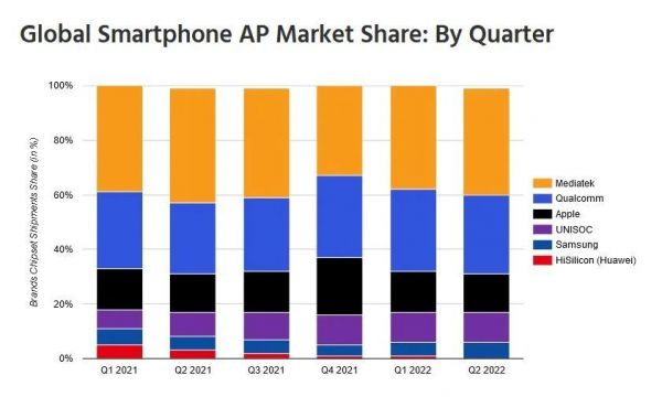 从入门级的天玑 700 到中高端的天玑 1000、天玑 1200,以及旗舰级的天玑 9000,发哥收获了良好的市场反响。过去一年多的时间里,联发科智能手机处理器的市场份额保持在 40% 左右,稳坐第一。