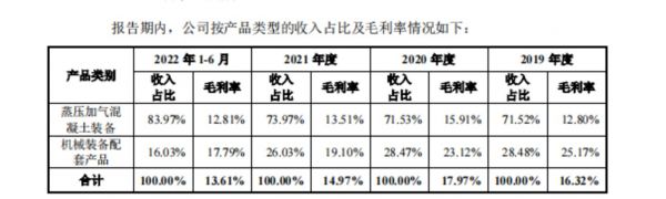 资料显示,天元智能专业从事自动化成套装备及机械装备配套产品的研发、设计、生产与销售。2019年至2021年以及2022年上半年,公司实现营业收入分别为7.04亿元、7.48亿元、11.14亿元、5.08亿元,同期内,实现归母净利润分别为4225.36万元、6849.86万元、8135.38万元、3050.1万元。其中,报告期内,蒸压加气混凝土装备占主营业务收入比例为71.52%、71.53%、73.97%、83.97%,为公司收入和利润的主要来源。