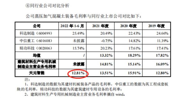 钛媒体APP了解到,国内蒸压加气混凝土装备行业的生产厂家较多,但具备完整加工能力的企业并不多,在中高端市场集中度较高,基本被少数几家公司所垄断,但对比这些公司,尽管都受到原材料等市场因素的影响,天元智能的毛利率表现远不如其他几家。