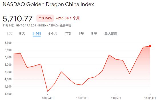 行情数据显示,涵盖一篮子65家在美上市中概股公司的纳斯达克中国金龙指数在本月迄今已累计上涨了约23%,有望录得至少2001年以来表现最为强势的月度行情。