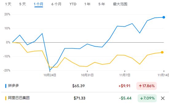 本月迄今,在美上市阿里巴巴的股价已累计上涨了逾12%,拼多多则上涨了逾19%。