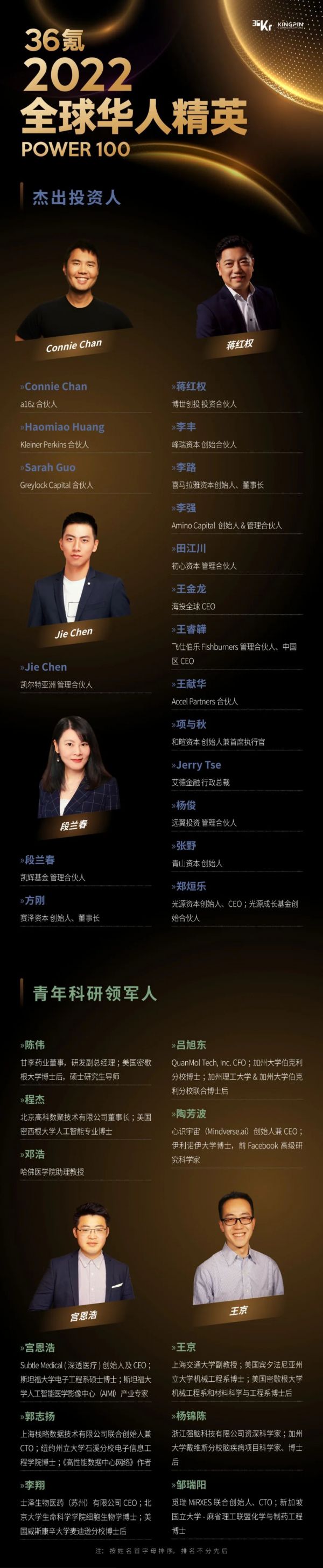 「36氪2022全球华人精英Power100」正式启动,聚焦全球华人影响力