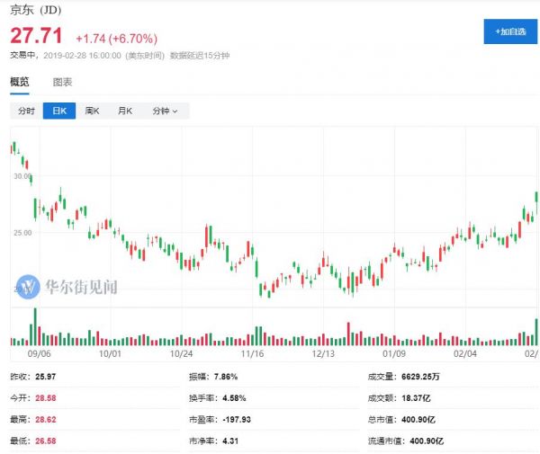 京东股价涨6.7%创5个半月新高 四季度盈利大超预期