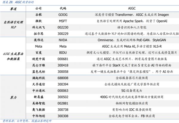 国盛证券进一步认为,生成算法、NLP(自然语言处理)与算力决定AIGC能否运行,而高质量的数据集决定了AIGC质量与商业模式。相关公司包括: