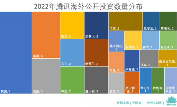2022年,尽管腾讯投资的整体步调在放缓,但海外项目占比陡增,从一年前的19.27%增长为今年的48.89%。