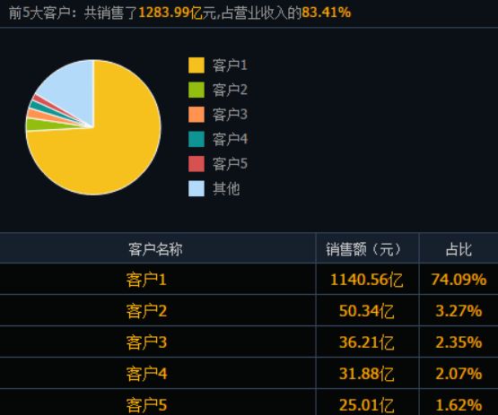 ▲ 立讯精密2021年前5大客户营收占比 来源:同花顺