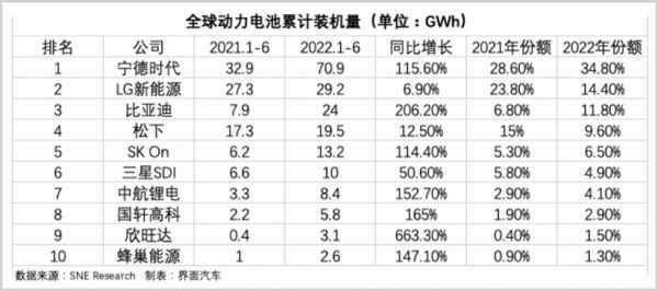 根据欣旺达规划,到2025年其落地产能为138GWh,全球规划总产能为500GWh。一个对比数据是,2022年上半年,全球排名第一的宁德时代装机量为70.9GWh,而欣旺达装机量同比大涨663.3%达到3.1GWh,市占率来到1.5%,在全球范围内首次跻身前10。