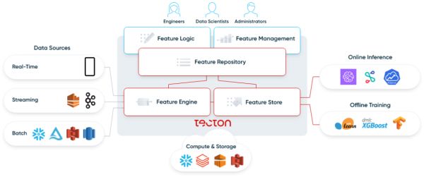 Tecton 是一个 feature store(特征平台),用于创建、存储和管理机器学习工作中的 feature(特征)。如果我们将 AI/ML 模型简单看作一个回归方程,那么特征就是自变量"x",我们在训练和推理时都需要用到大量特征。Feature store 目前主要用于实时推理场景,使用对象是数据科学家和机器学习工程师。