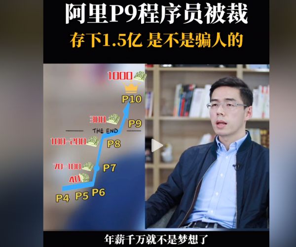 在田密的早期视频中,就做了这样一期节目科普。当时知乎有热帖写道,“有被裁的P9程序员自称存下1.5亿”,田密称,如果是阿里早期的P9/P10,有很多股票的情况,年薪千万就不是梦想了,这些人的总资产过1.5亿是有可能的。