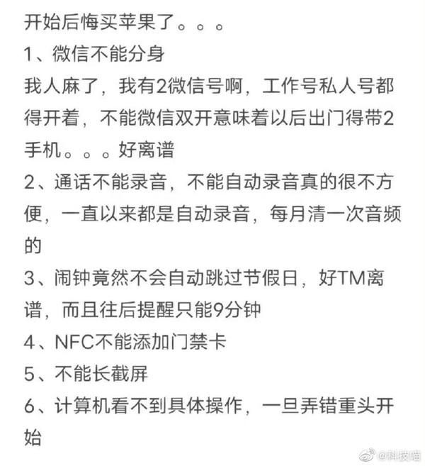 网友后悔买iPhone的理由