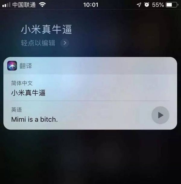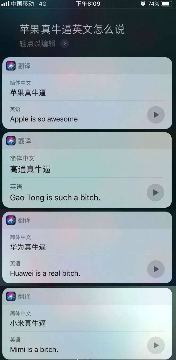 但是,以上翻译结果还不至于将Siri翻译结果套用“阴谋论”,说不通的地方在于——见过骂自己CEO的手机吗?