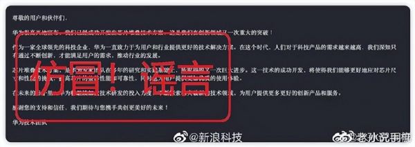 华为官方吐槽上述消息纯属“仿冒!谣言”