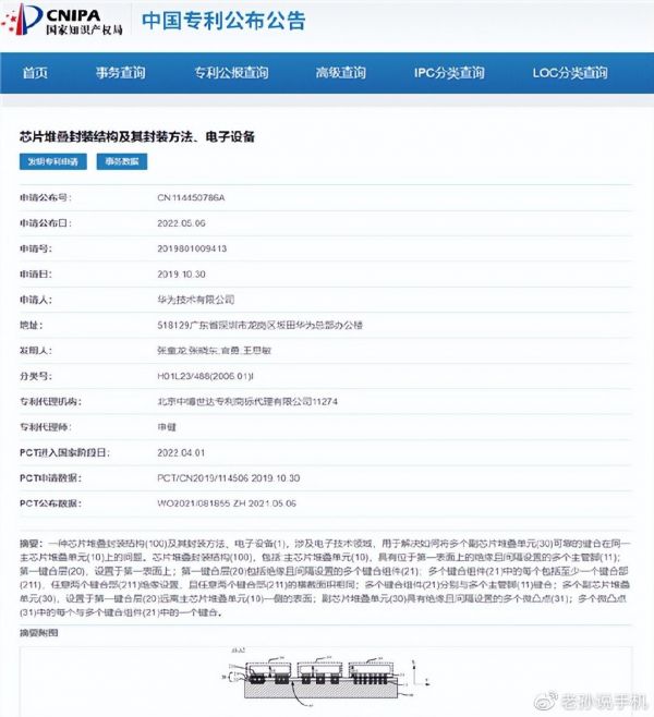 事实上,华为确实在2019年申请了芯片堆叠技术的专利,去年也已通过了国家知识产权局认证,但这与手机上芯片技术突破关系不大。华为申请的专利描述为通过芯片堆叠封装结构及其封装方法,解决多个副芯片堆叠单元可靠的键合在同一组芯片堆叠单元上的问题,涉及电子设备、电子技术领域。
