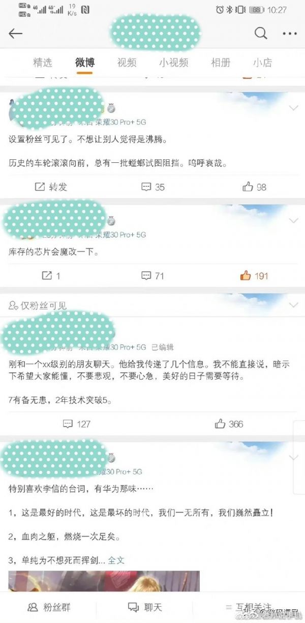 除了传华为拥有堆叠芯片技术的假消息以外,还有一些大V在2020年就带节奏,声称华为会魔改新片,从一些内部高级别朋友那里得到消息“7nm工艺制程有备无患,两年实现5nm工艺制程”突破。可现实大家也都看到了,华为暂时仍然只能定制高通4G芯片,这些传播假消息的博主赚的盆满钵满,带节奏不会受到任何损失,华为却因此要承担风险,这也是华为出面辟谣的原因。