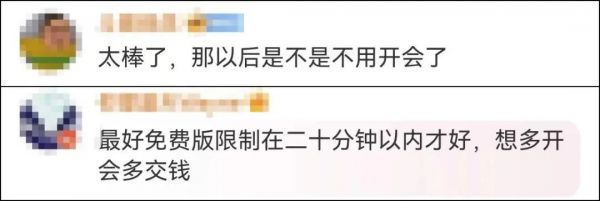 公告显示,自2023年4月4日起,免费版用户发起的单场会议规模将从疫情前最高25人调整为最高100人,在此之前召开的会议将不受影响。