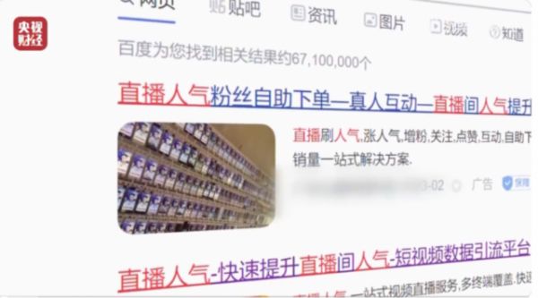 报道称,在网上,有平台会售卖直播水军、直播间人气、播放量、点赞、评论等,24小时自助下单。