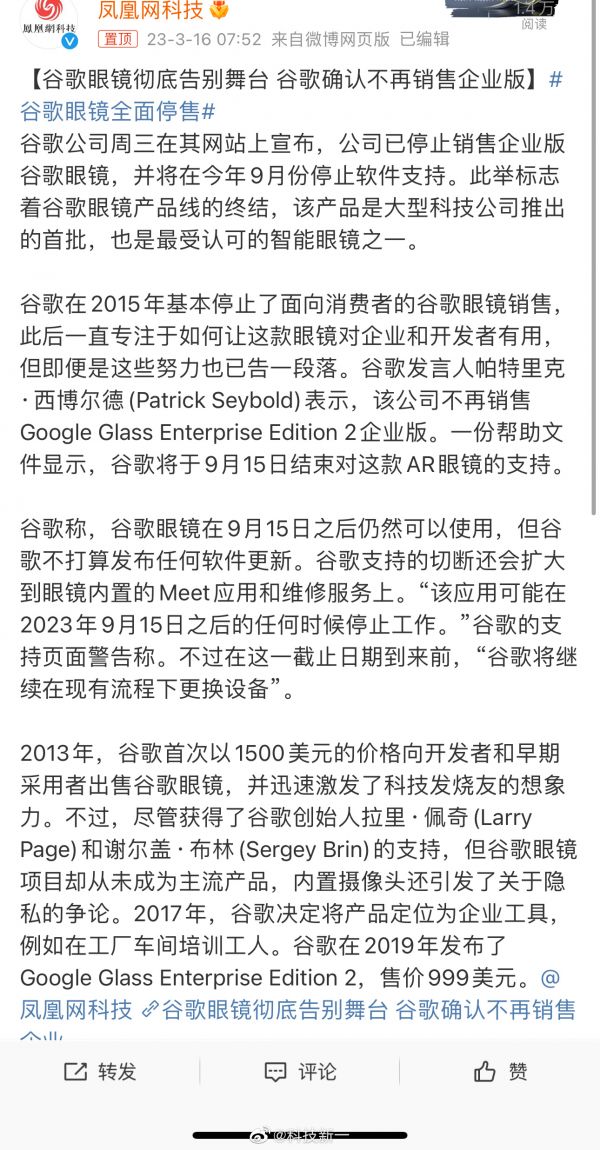 谷歌眼镜正式停售,退出历史舞台。这是谷歌10年前就推出的智能眼镜,大家觉得这眼镜为啥没被普及?[摊手]#谷歌眼镜全面停售#