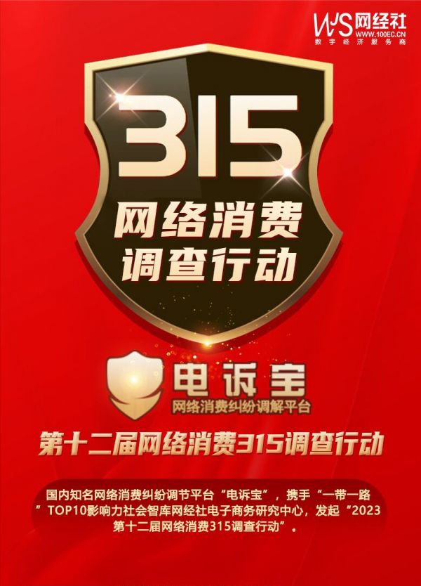 国内知名网络消费纠纷调节平台“电诉宝”,携手“一带一路”TOP10影响力社会智库网经社电子商务研究中心发起“2023第十二届网络消费315调查行动”。