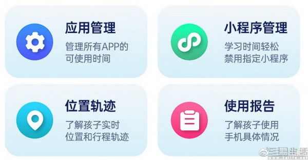 根据厂商的说法,其内置了自研的“防沉迷系统”。允许家长远程管理手机上的功能、随时监看手机的位置轨迹,甚至可以一键锁定手机,还能为所有APP限制使用时间、一键禁用指定的小程序,以及远程查看手机的具体使用报告(比如几点几分打开过什么应用等)。