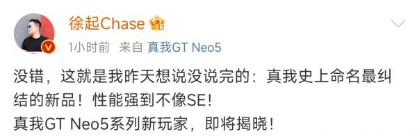 realme GT Neo5 SE即将登场