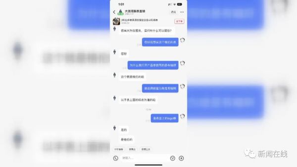 这只蓝色表盘的手表,最终以199元/只的价格上了链接。但记者查询发现,这只手表表盘商标显示的格伦品牌是一个国产品牌。私信客服后,对方的答复是手表品牌以表盘上的标志为准。也就是说,商家宣称卖的瑞士品牌手表,实际是国产品牌机械表。