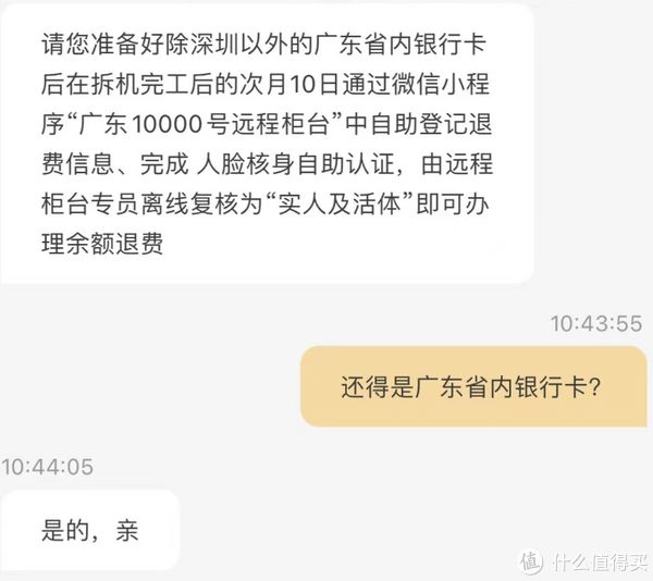 在app首页咨询在线客服,客服说:“想要卡里的钱,要么注销后在小程序里登记一张除深圳以外的广东省内银行卡,要么去广东省内任意一家电信营业厅。”咱直接表示这是霸王条款啊,太生气了。