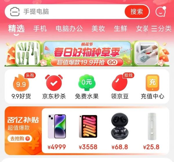 作为京东推出百亿补贴后的第一次节日促销,「38 节大促」虽然上线了「九块九包邮」频道,但根据易观千帆的监测数据显示,京东在此期间的日活并没有得到显著提升,甚至没有掀起任何水花。
