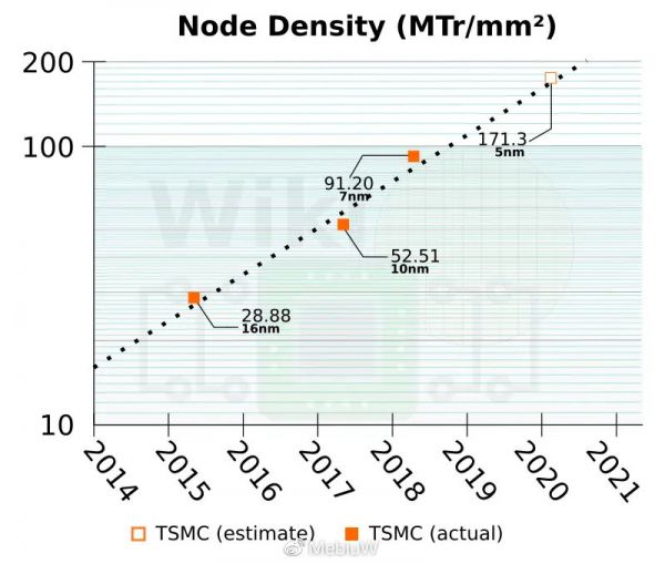 7nm更贵是无可置疑的,但是也需要考虑到7nm本身的集成度是更高的,如果制造一样规格的芯片,7nm所需要的芯片面积是远小于14nm的要求的。台积电的N7的逻辑晶体管密度是N16的3倍有余,即便考虑到实际芯片中逻辑晶体管占比没那么高,N16不是N14,实际晶体管密度达到2倍也是十分容易的事情。所以我们再看上面那个图,会发现实际上用N16造一个一模一样的芯片,成本反而比N7要贵上差不多50%(331刀 vs 233刀)。