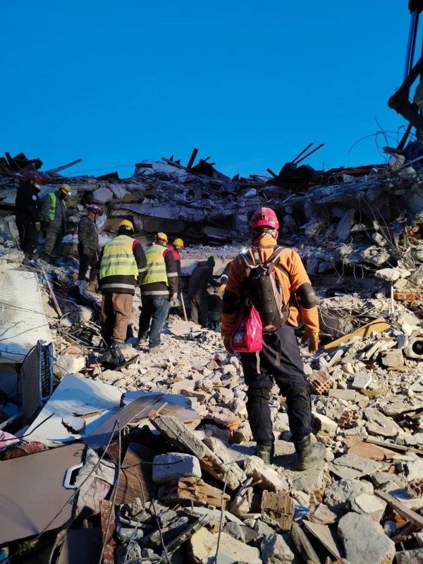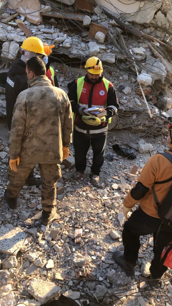 这支救援队从伊斯坦布尔出发,2月10日凌晨抵达哈塔伊。他们半路遇到一处废墟,立刻投入搜救。作业了30多个小时,最终和当地消防队伍一起救出了4名生还者。对于救援队来说,发现生还者要比找到遇难者激动得多。