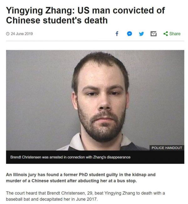 这个结果,部分告慰了2年前就离开人世的被害者章莹颖,但更让我们关注的,是接下去宣判(sentence)阶段。宣判将于当地时间7月8号开始,因为罪名成立,被告会被陪审团判处“无期徒刑”或者“死刑”。那么,被告Christensen会被判处死刑么?