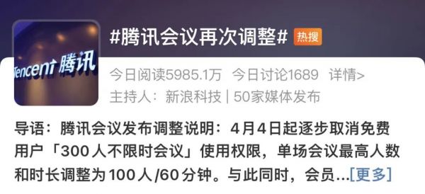 ▲ 来源:腾讯会议微信公众号“腾讯会议调整说明”一出
