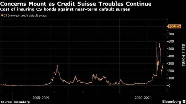 瑞士苏黎世时间3月15日(周三),该国百年大行瑞士信贷(下称瑞信)突然爆雷,股价一度重挫30%,且该行一年期信贷违约掉期(CDS)接近1000个基点,不仅创下2003年以来新高,还是该行20年平均水平的14倍以上。