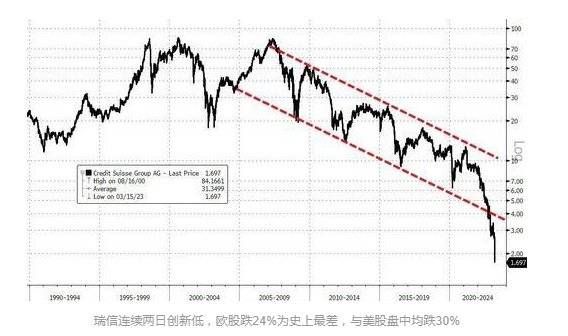 隔夜市场,瑞信的欧股和美股盘中齐跌30%、收盘跌超20%,首次跌穿2瑞士法郎,创史上最大单日跌幅且连跌八日,并拖累全球股市下挫。瑞士央行发表支持声明后,瑞信股价盘后跌幅一度收窄。