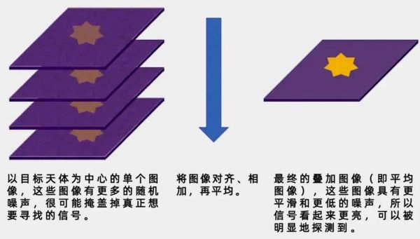 将许多图像叠加在一起,可以使目标信号比背景噪声更亮。(图/Tessa Vernstrom)