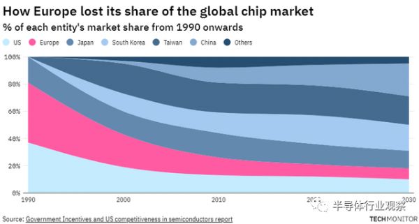 可见,恢复欧洲在全球芯片市场的昔日辉煌将是一项艰巨的任务。