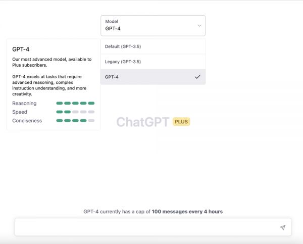 目前,ChatGPT Plus版本的用户已经可以直接在原来的ChatGPT基础之上,选择GPT-4模型,直接体验。不过,目前GPT-4每4小时只能回答100个问题。