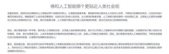 首先,它会发表一个主要观点:这个问题没有绝对性的答案,人工智能和佛都有存在的意义。