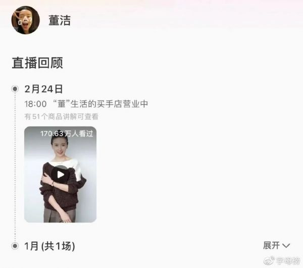 2月底,知名艺人董洁在小红书直播带货,主打安静、柔和风格,当日观看量超170万,累计GMV(商品交易总额)超3000万元。这一数据已经赶上抖音头部带货直播间东方甄选的日常表现。
