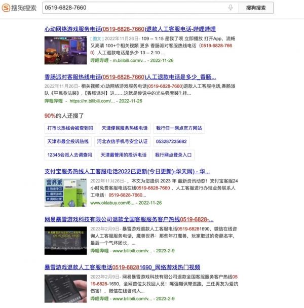 搜狗搜索则表示,目前针对金融等重点品类的搜索结果,搜狗会优先展示官方电话并折叠不相关的电话,“后续计划会覆盖更多领域”。
