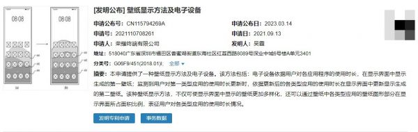 荣耀“壁纸显示方法及电子设备”专利可通过壁纸显示应用使用时长