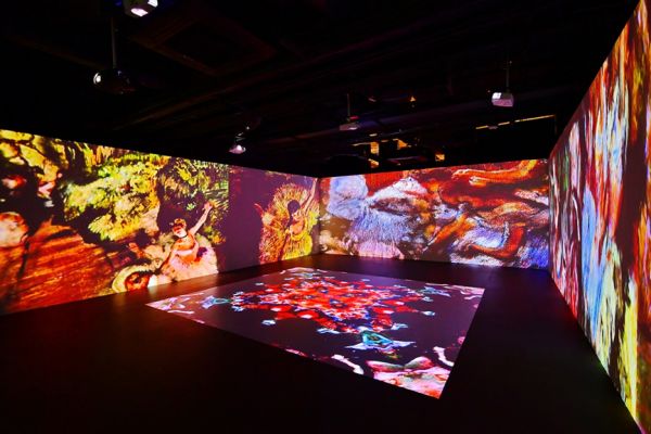 此前,唯艺云推出的一个互动展览“蓝·想象”,引起了不少关注。这个展览的主要互动体验是观众站在一个环形的数字屏幕中间,可以通过手势控制屏幕上的艺术图像和音乐,创作出自己的数字艺术作品。